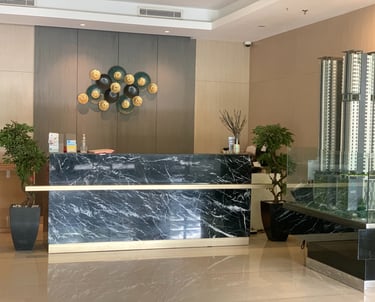 Rasakan sambutan hangat dengan area resepsionis yang elegan serta staf profesional siap membantu Anda.